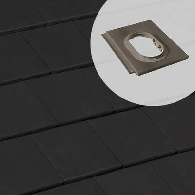 Tuile à douille Durovent Innotech, en béton, destinée à recevoir un conduit de ventilation de diamètre allant de 110 à 150 mm.
