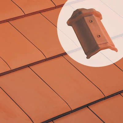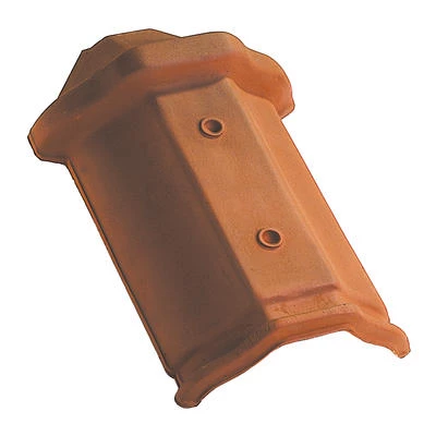 Élément en terre cuite pour la finition des faîtages losangés à emboîtement.