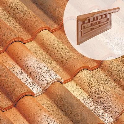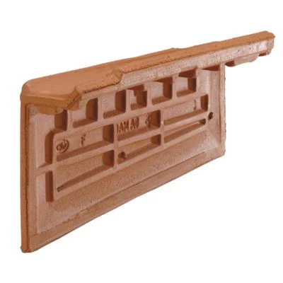 Rive individuelle verticale gauche à emboîtement à grand rabat, en terre cuite, permettant la finition des rampants de pignon.