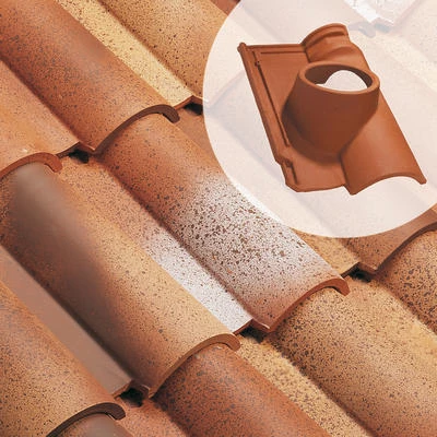 Tuile Ă douille, en terre cuite, diamètre int. du tuyau d’Ă©vacutaion : 160 mm (conforme VMC).