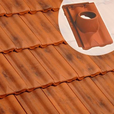 Tuile Ă douille, en terre cuite, diamètre int. du tuyau d’Ă©vacutaion : 126 mm utile (conforme VMC).