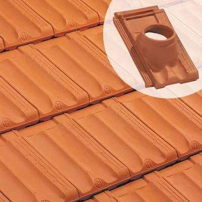 Tuile Ă douille, en terre cuite, diamètre int. du tuyau d’Ă©vacutaion : 120 mm (conforme VMC).