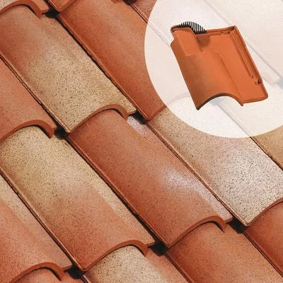 Tuile chatière, en terre cuite, avec grille assurant la ventilation de la sous-face des tuiles.