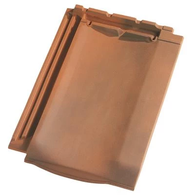 Tuile en terre cuite grand moule faiblement galbée. Elle se pose à joints droits.