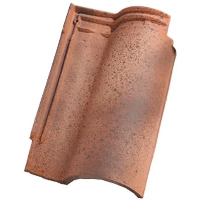 Tuile en terre cuite, à double emboîtement grand moule fortement galbée, pose à joint droits.
