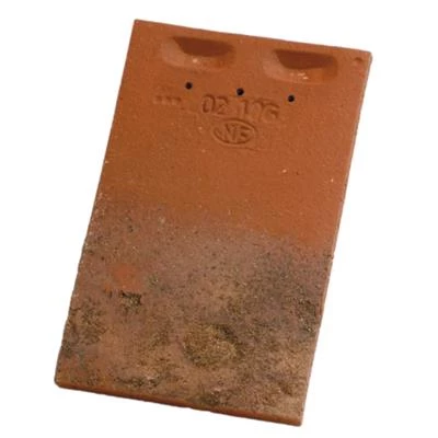 Tuile plate pressée en terre cuite. Se pose à joints croisés.