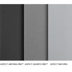 - La patine naturelle (gris clair semi-mat) apparaît entre six mois et deux ans après la pose, selon le milieu environnant et sa localisation sur le bâtiment.