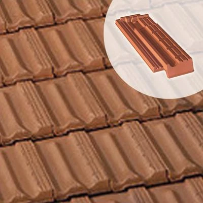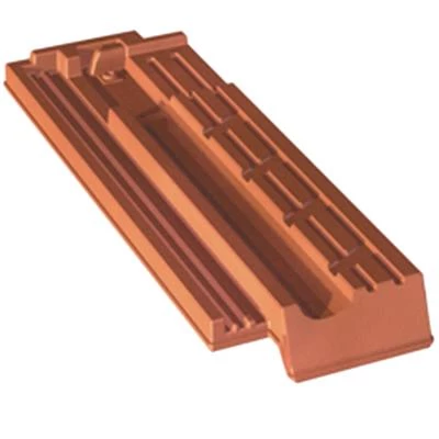 Demi-tuile, en terre cuite, permettant la jonction entre les tuiles normales et les tuiles de rives droites.