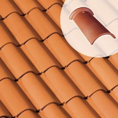 Faîtière/arêtier demi-ronde, en terre cuite, destinée à la réalisation des faîtages et arêtier.