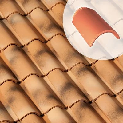 Tuile à emboitement de 33, en terre cuite, destinée à la réalisation des faîtages et arêtier.