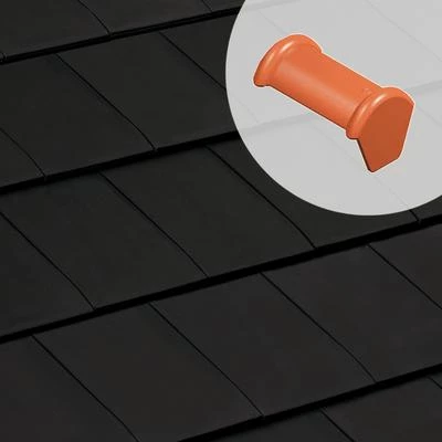 FaĂ®tière d’about 1/2 ronde dĂ©but, en terre cuite, permettant la finition de la ligne de faitage.