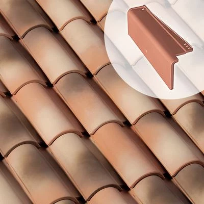 Tuile de rive Ă rabat Ă gauche en terre cuite, permettant la finition des rampants de pignon.