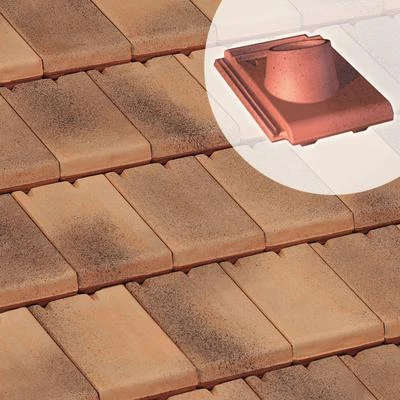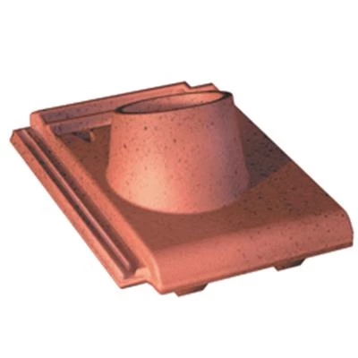 Tuile Ă douille, en terre cuite, diamètre int. du tuyau d’Ă©vacutaion : 90 mm.