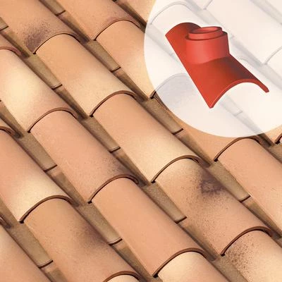 Tuile Ă douille, en terre cuite, diamètre int. du tuyau d’Ă©vacutaion : 100 mm.