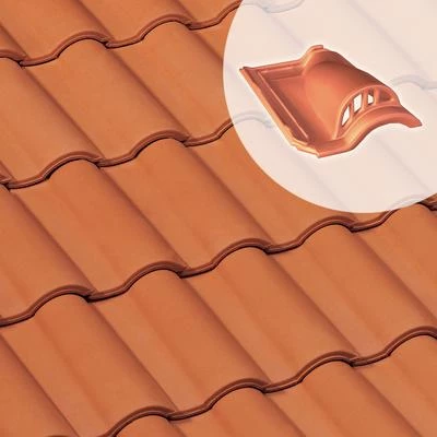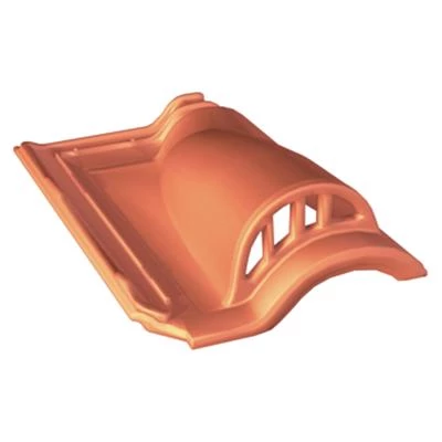 Tuile chatière grillagée, en terre cuite, assurant la ventilation de la sous-face des tuiles.