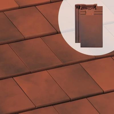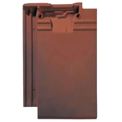 Tuile de terre cuite petit moule à pureau plat, double emboîtement, double recouvrement.
