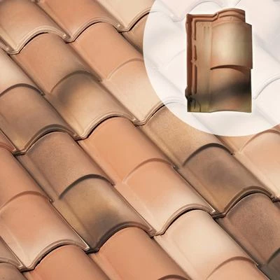 Tuile de terre cuite double emboîtement, double recouvrement.