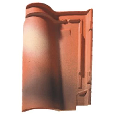 Tuile de terre cuite à emboîtement à relief, double emboîtement, double recouvrement pour toitures à faible pente.