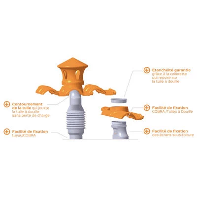 Connecteur aéraulique de VMC pour tuile à douille en terre cuite.
