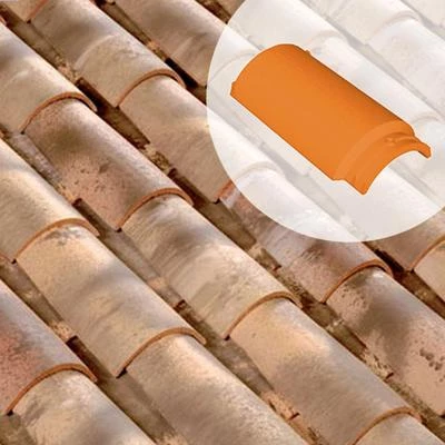 Faîtière/arêtier, en terre cuite, forme cylindrique à emboitement de 40 cm, destinée à la réalisation des faîtages et des arêtiers.