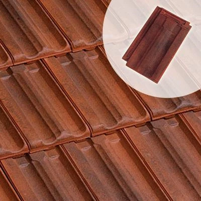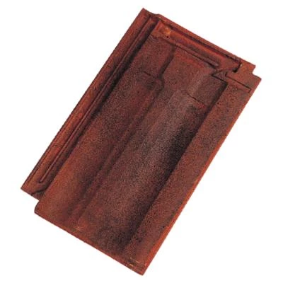 Tuile en terre cuite de la famille des grands moules avec une côte centrale, à double emboîtement et double recouvrement.