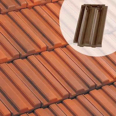 La tuile PV 13 Huguenot de EDILIANS est une tuile en terre cuite de la famille des grands moules faiblement galbée à relief.